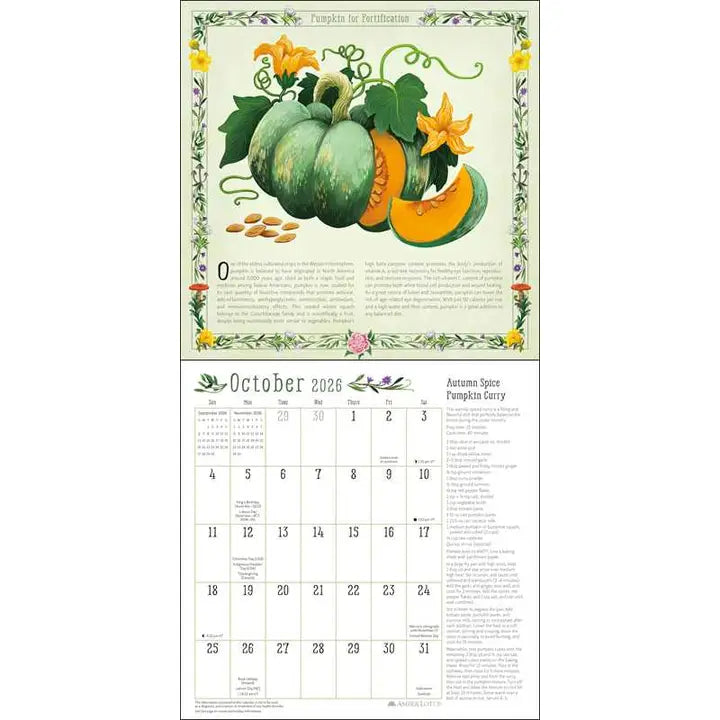 For health-conscious cooks who enjoy exploring the natural healing properties of herbs, grains, and flowers, the Kitchen Witch 2026 Wall Calendar features 12 plants with medicinal benefits.