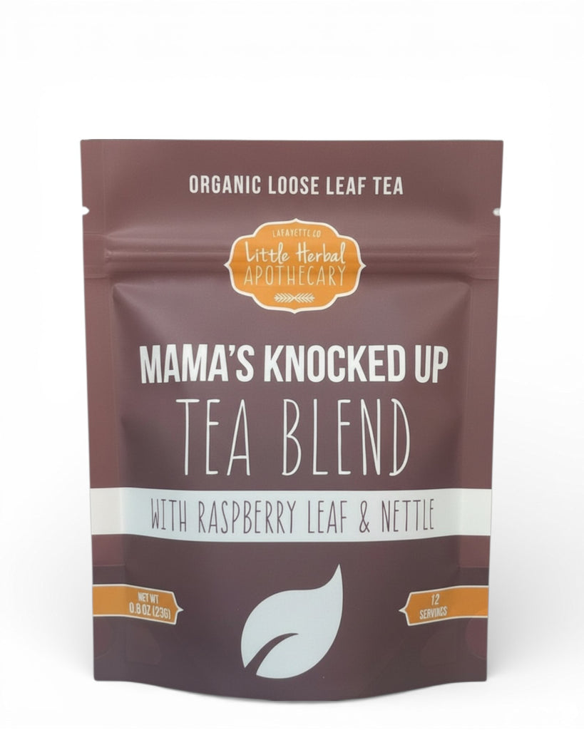 Mama's Knocked Up Tea Blend is a soothing, nourishing tea designed to support pregnant mamas throughout their journey. This hydrating blend is rich in essential vitamins and minerals like Calcium, Magnesium, and B-vitamins, helping to support overall wellness. Raspberry leaf helps tone the uterus in preparation for childbirth, while Lemon Balm promotes relaxation, reducing stress and encouraging feelings of calm and happiness.