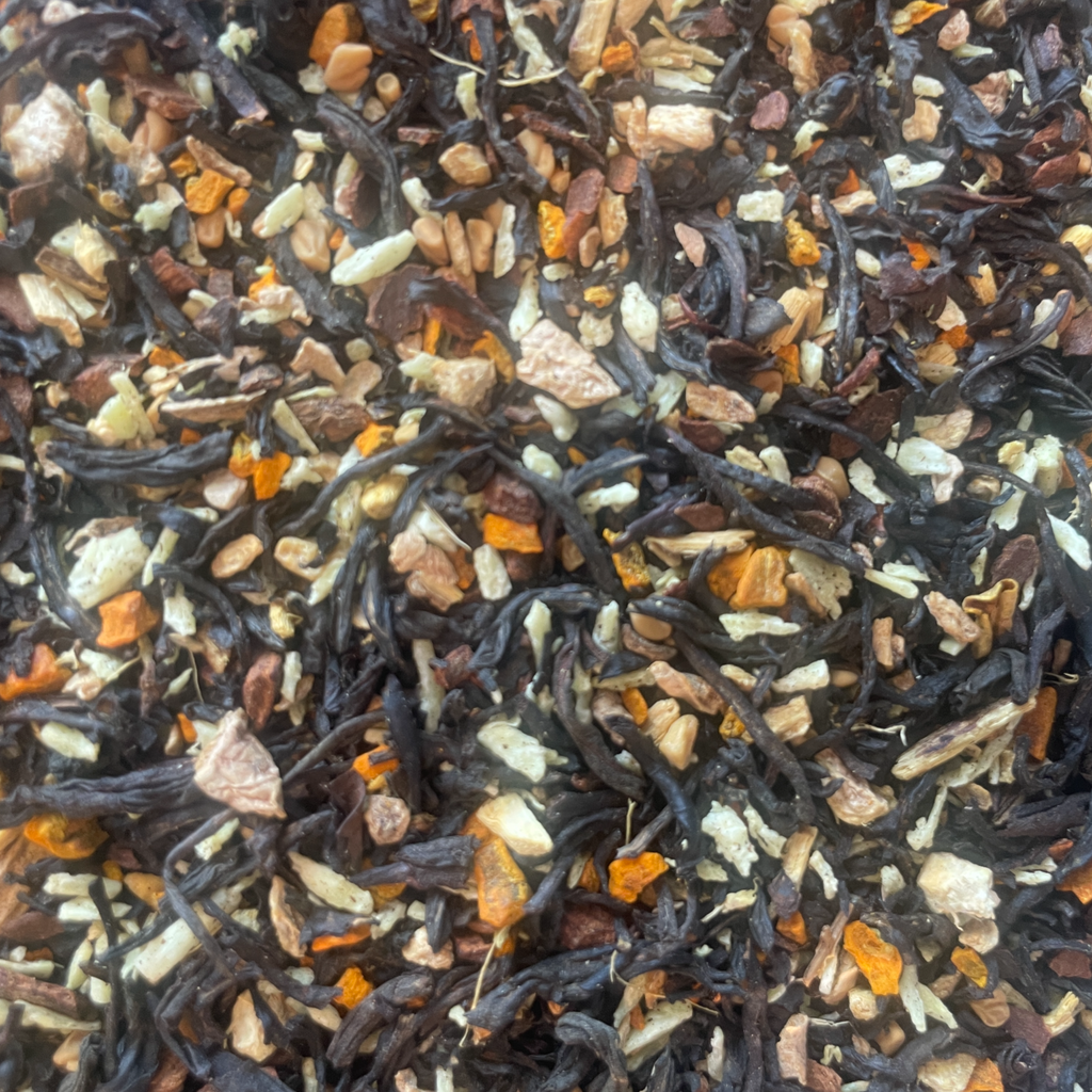 Ingredients: Organic Black Tea, Organic Coconut, Organic Cinnamon, Organic Turmeric, Organic Ginger, Organic Fenugreek, Organic Licorice