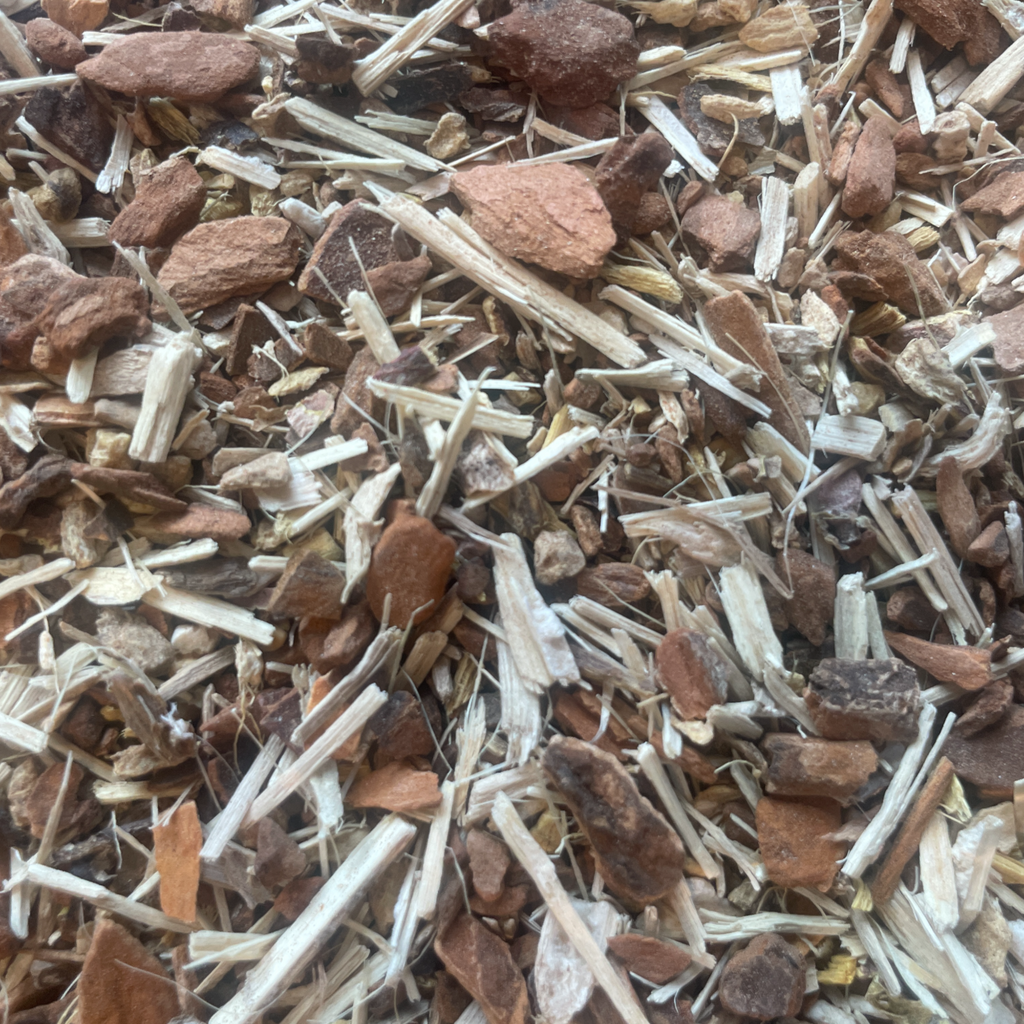 Ingredients: Wildcrafted Sassafras, Organic Eluethero Root, Organic Ginger Root, Organic Cinnamon Root, North American Rhodiola Root (Grown without chemicals), Organic Licorice Root, Organic Fenugreek Seed