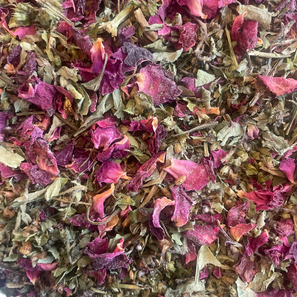 Simple yet profoundly soothing, this Tulsi and Rose Tea blend is crafted to speak directly to the heart. The revered Tulsi, known for its adaptogenic properties, works alongside the delicate, floral sweetness of Rose to promote a sense of calm and tranquility. Together, they encourage inner peace, emotional balance, and a gentle grounding effect. Whether you're seeking to quiet your mind, soothe your spirit, or simply find a moment of stillness, this blend offers a beautiful, aromatic escape to help you reconnect with your center.